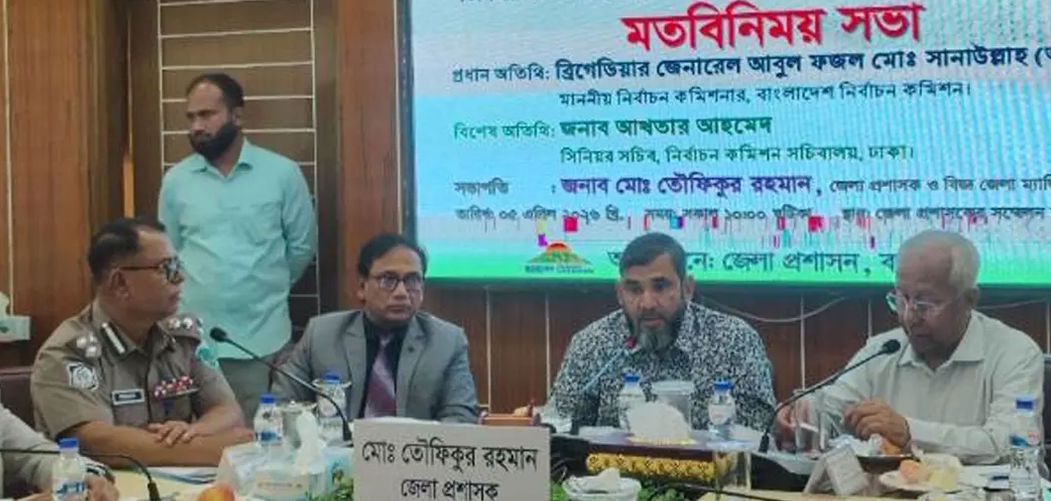 সভায় জেলা প্রশাসক মো. তৌফিকুর রহমানের সভাপতিত্বে বিশেষ অতিথি হিসেবে বক্তব্য দেন নির্বাচন কমিশন সচিবালয়ের সিনিয়র সচিব আখতার আহমেদ। এছাড়া উপস্থিত ছিলেন বাংলাদেশ আনসার ও গ্রাম প্রতিরক্ষা বাহিনীর অতিরিক্ত মহাপরিচালক, রাজশাহী বিভাগীয় কমিশনার, রাজশাহী রেঞ্জের ডিআইজি, বগুড়া জেলা পুলিশ সুপার, রিটার্নিং কর্মকর্তা এবং সংশ্লিষ্ট অন্যান্য কর্মকর্তা।