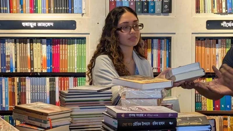 বাংলামোটরের চেইন বুকশপ বাতিঘরে উপস্থিত হয়েছিলেন প্রধানমন্ত্রী তারেক রহমানের মেয়ে জাইমা রহমান।